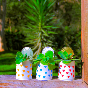 Clean and decorate tin cans and use them as planters for flowers or herbs. You can hang or place them on a windowsill. Another styling tip is to arrange them in a row for a unique edge to your garden borders.